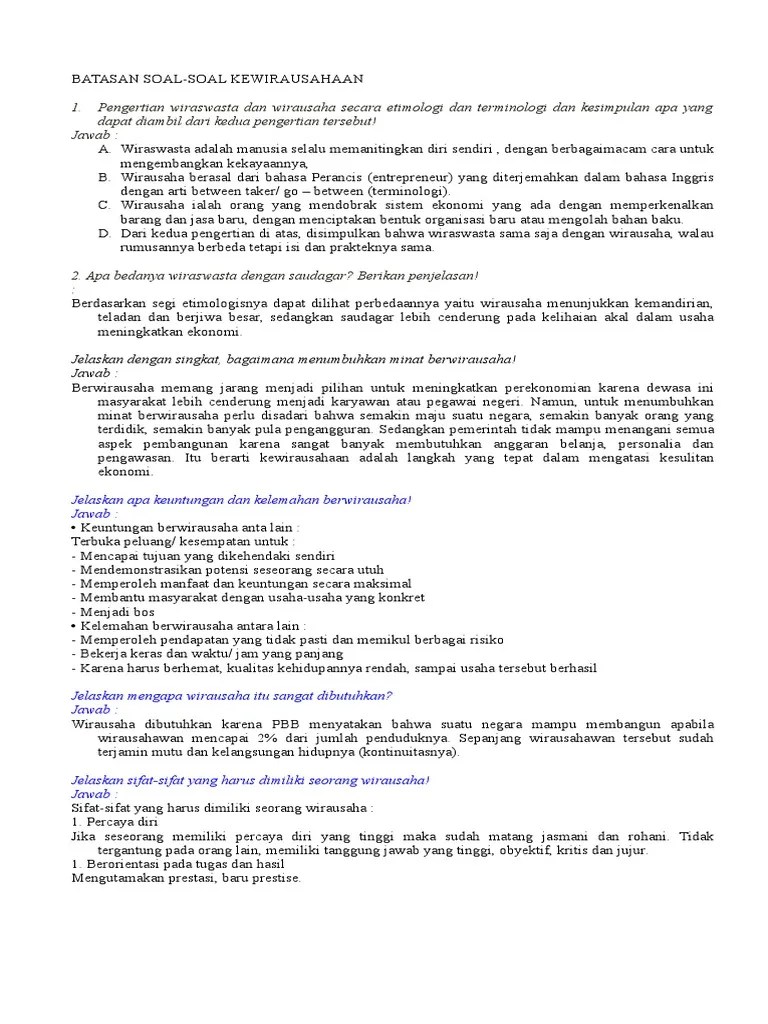 Adapin beberapa contoh usaha niaga diantaranya adalah sebagai berikut: Kewirausahaan berasal dari kata wira dan usaha. Pada artikel kali ini kita akan membahas tentang apa itu terminologi. secara etimologi pengertian wirausaha adalah terdiri dari kata "wira" Edupreneur atau educational entrepreneur berasal dari 2 kata yaitu education bermakna pendidikan dan entrepreneur bermakna pengusaha atau wirasahawan. Menurut bahasa (etimologi), metode berasal dari bahasa yunani, yaitu meta (sepanjang), hodos (jalan). Dilihat dari terminologi, dulu dikenal adanya istilah wiraswasta dan kewirausahaan. Yang mempunyai arti perwira atau pahlawan, sedangkan "usaha" Kumpulan bank soal cpns online. Jadi definisi dari kewirausahaan adalah suatu hal yang berhubungan dengan keberanian seseorang untuk melakukan kegiatan. Wira berarti manusia unggul, teladan, berbudi luhur. Wira berarti peluang, pahlawan, manusia unggul, teladan, berbudi luhur, gagah berani, dan berwatak agung. Seorang wiraswasta pada umumnya melakukan kegiatan berniaga atau menjual suatu barang tertentu kepada konsumen.