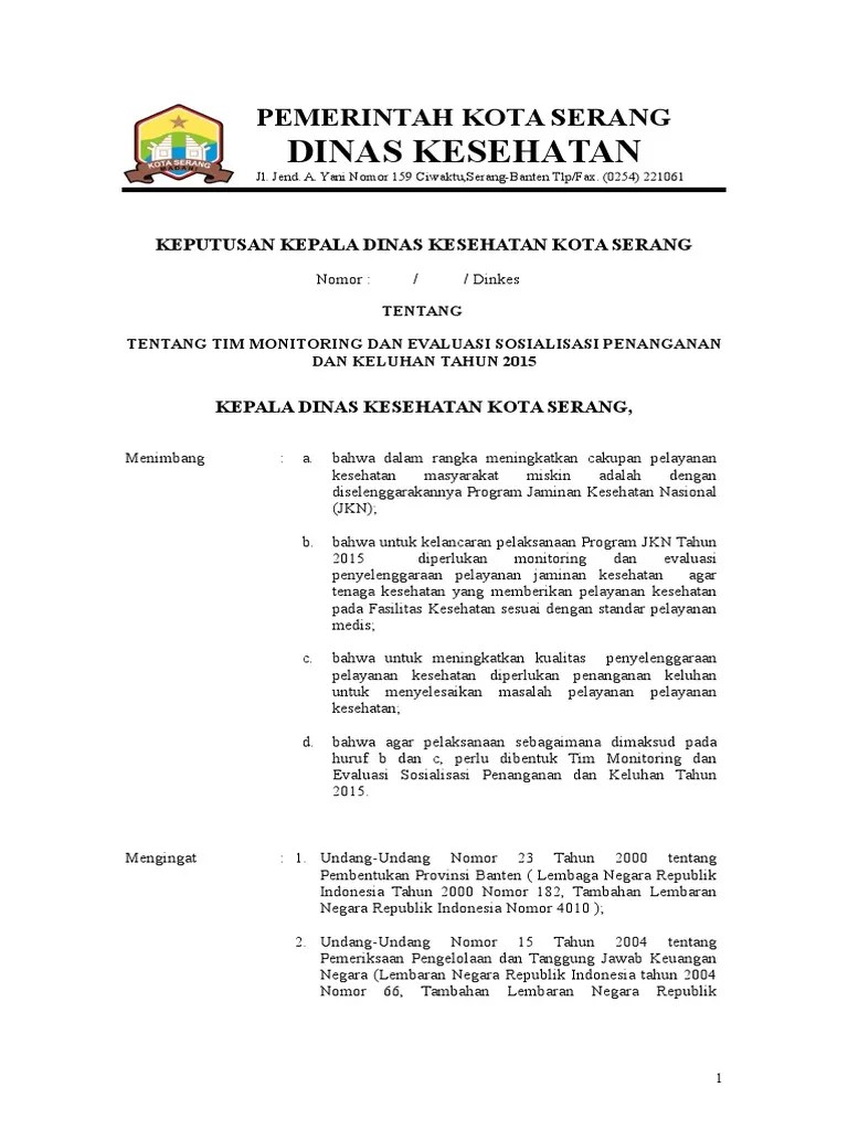 Sk penunjukan pejabat pembuat komitmen. Monitoring adalah upaya yang dilakukan secara rutin untuk. Ketahanan pangan tahun 2019, perlu dilakukan penyusunan. Dokumen akreditasi (bag.2) akreditasi puskesmas meranti sk tim monitoring contoh & format . Nomor 244, tambahan lembaran negara republik .